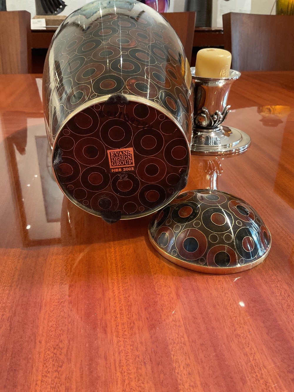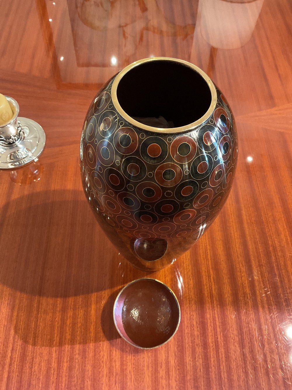 Brass Vase and Lid with Brown Circles